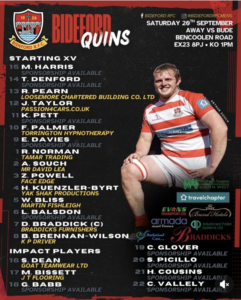 With the chiefs cup game cancelled due to Sarries pulling out here is the two teams for the away games today.